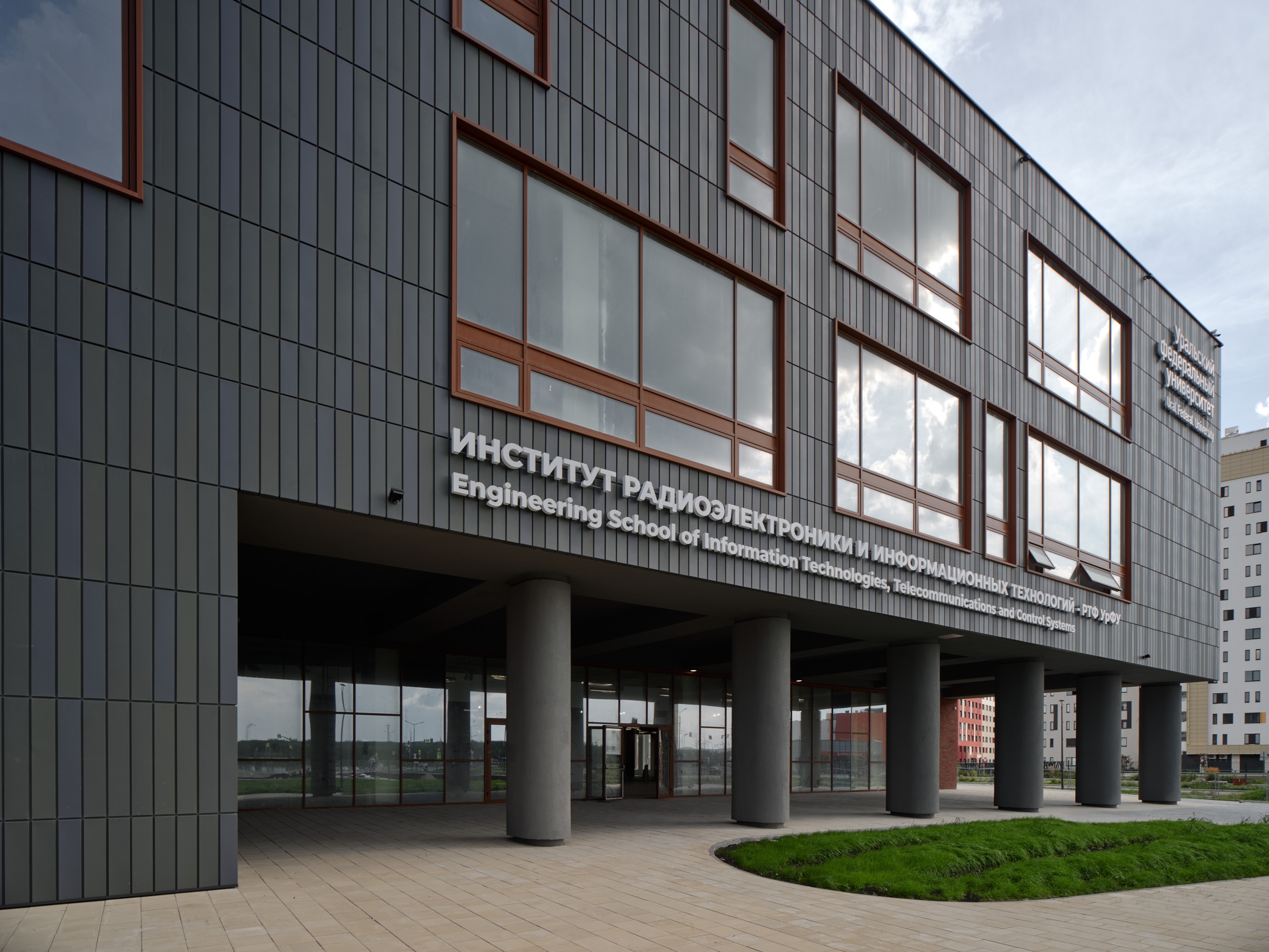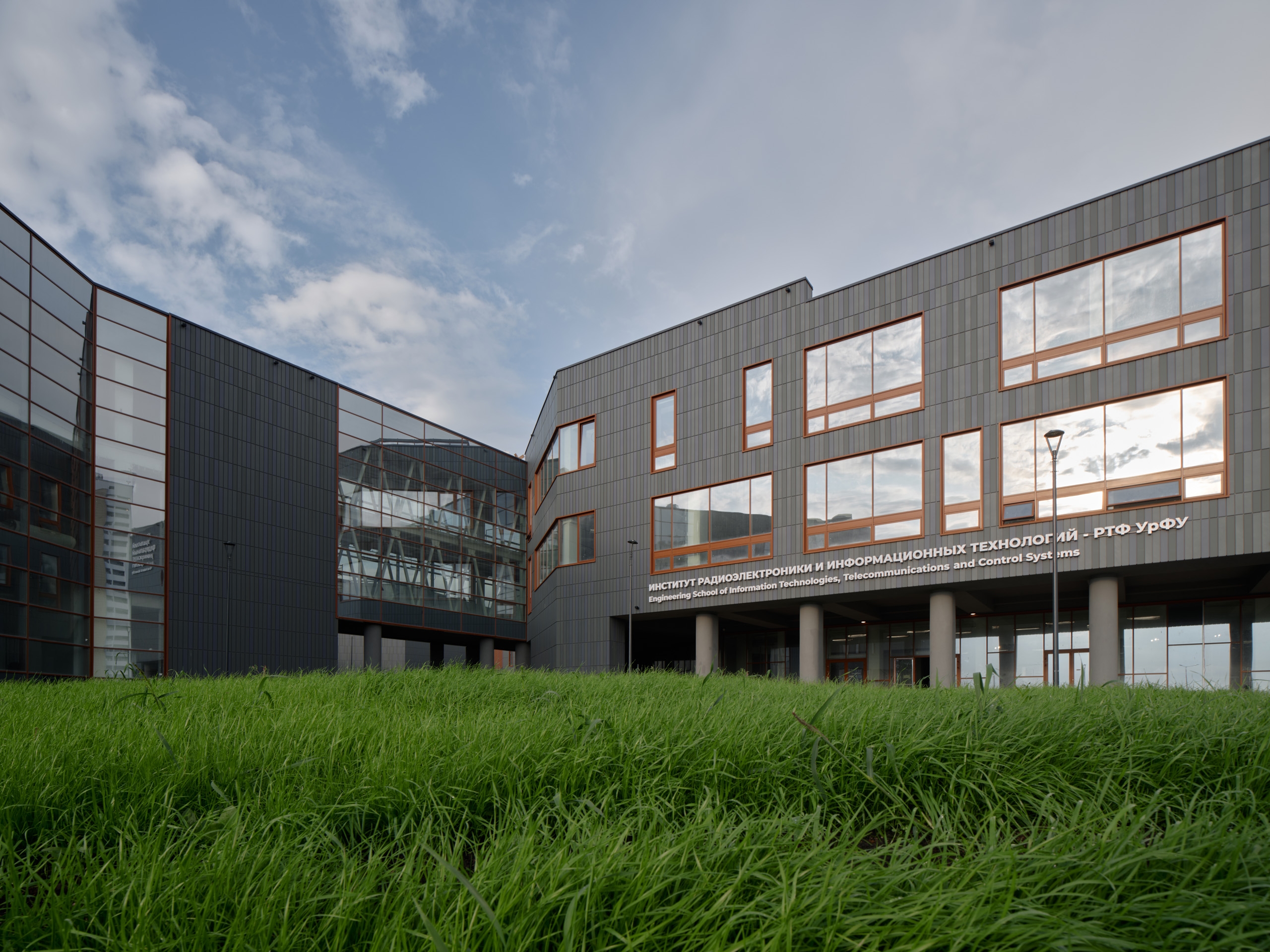 Особое место в структуре кампуса занимает здание Института радиоэлектроники и информационных технологий (ИРИТ-РТФ). Оно сформировано из блоков, объединённых светлыми атриумами с верхним светом и коворкинг-зонами. По периметру атриумов расположены лаборатории, компьютерные классы и трансформируемые аудитории. Весь учебный кластер, включая конференц-зал на 700 человек, спроектирован как функциональная и эстетичная среда, где студенты могут с равным комфортом посвящать себя сложным проектам или восстанавливать силы в зонах отдыха.