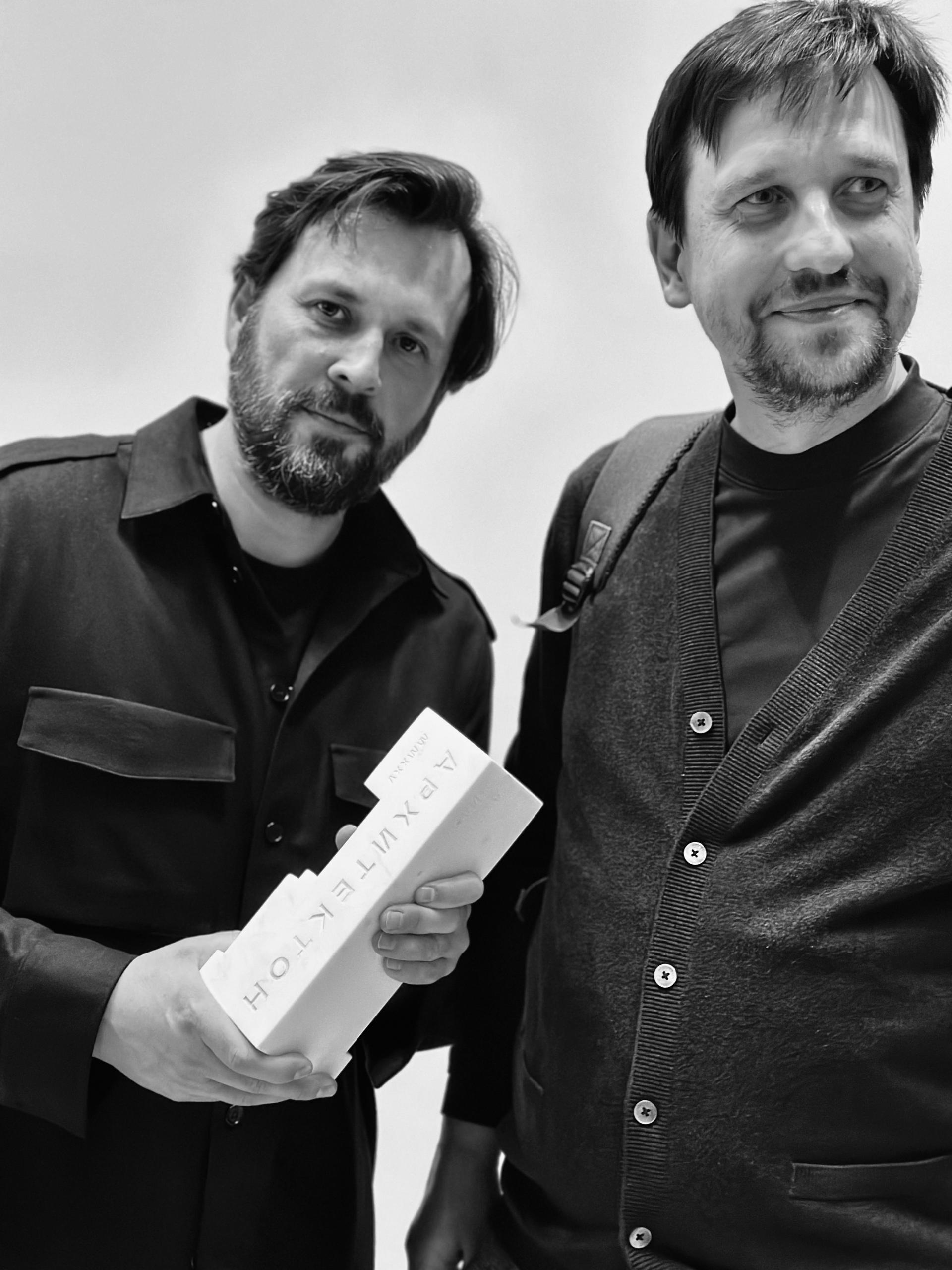 «Архитектон» — петербургская премия, но и мы в городе не гости: здесь уже несколько лет работает наш офис. Два года назад мы дебютировали на фестивале, и теперь вернулись с победой. В этом году в приключение за наградой отправились главные послы АБГД: сооснователи и архитекторы бюро Никита Демидов и Павел Гордеев защитили проект в премии, рассказали о бюро и получили памятную статуэтку «Архитектона».