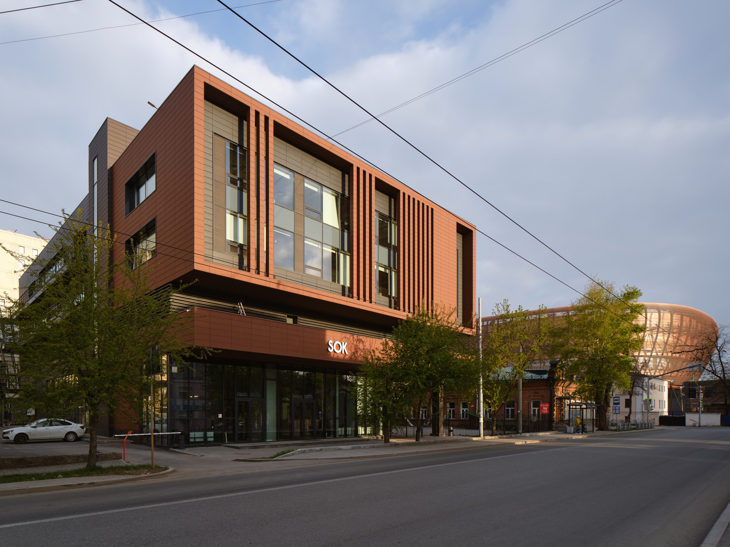 Основной фокус внимания здания бизнес-центра направлен на памятник архитектуры – каменный жилой дом купца И. Афонина с симметричными фасадами, построенный в конце 1870-х и перестроенный в 1900 году.